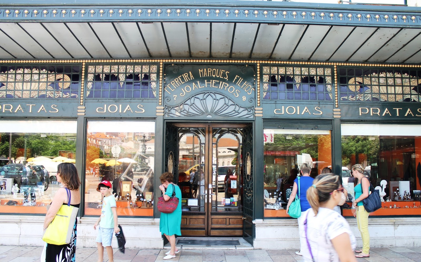 Nuestro particular paseo pessoano toma nuevas fuerzas al entrar en la Praça do Rossio. En seguida nos encontramos delante de la joyería Ferreira Marques, donde los prometidos lisboetas tienen por tradición encargar sus alianzas de matrimonio.