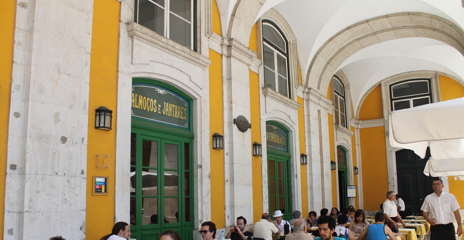 Bajamos ya por la Rua da Prata, en plena Baixa, en dirección a la Praça do Comércio para entrar en uno de los lugares pessoanos por excelencia, el Café Martinho da Arcada. Allí se mantiene intacta la mesa donde Pessoa se sentaba y que inspiró el famoso retrato del escritor realizado por Almada Negreiros que ilustra nuestra cabecera.