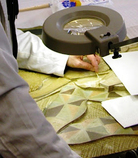 La labor de ir recuperando la policromía original que estuvo cubierta por varias capas de pintura blanca lleva un ritmo de 1 cm2 por mes.