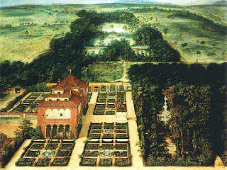 | Fernando VI y Bárbara de Braganza en los jardines del Palacio de Aranjuez, por Francesco Battaglioli. |